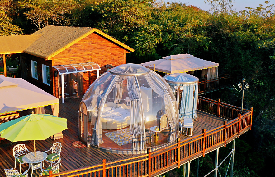 星空房拥有360度全透明设计,在星空房最浪漫的事,就是和爱的人一起观看星星,体验星空房带来的美好观感,这是属于独有时间的奇妙时光。星空房适合家庭出游、双人出游,多种房型可供选择。拉开窗帘迎接早晨的阳光,享受旅行中慢生活的一瞬间,透明的星空房设计,带上ins风装备可分分钟出大片,在星空房内迎接烈日和晚风,晚上开着窗听着虫鸣声,再惬意不过了。